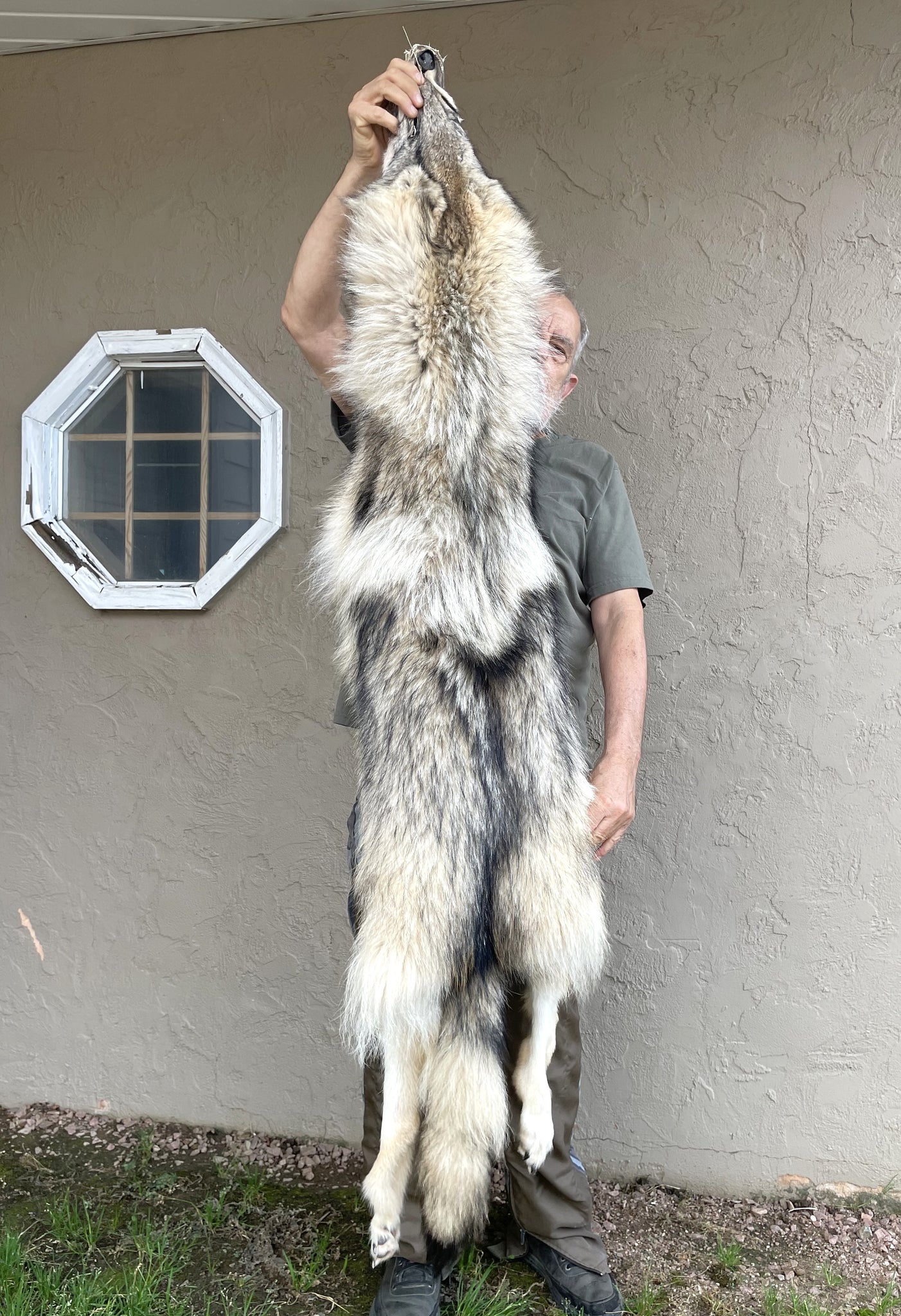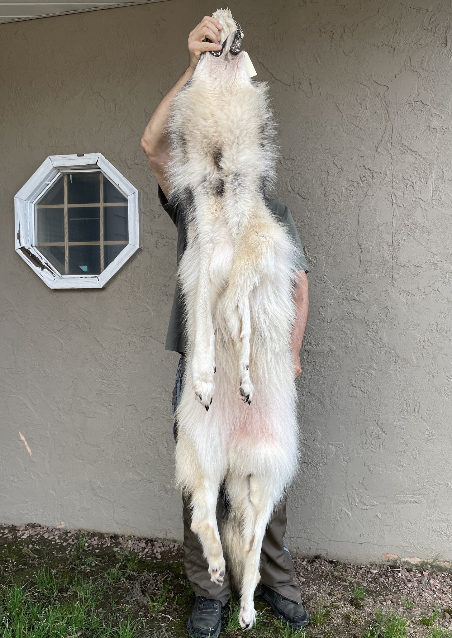 You are buying the wolf seen in the pictures. This is a beauty. The fur is "heavy" and pale.-Length 66"-Has all four feet, ears, perfect eye holes-skinning and handling is as good as it gets-western pale